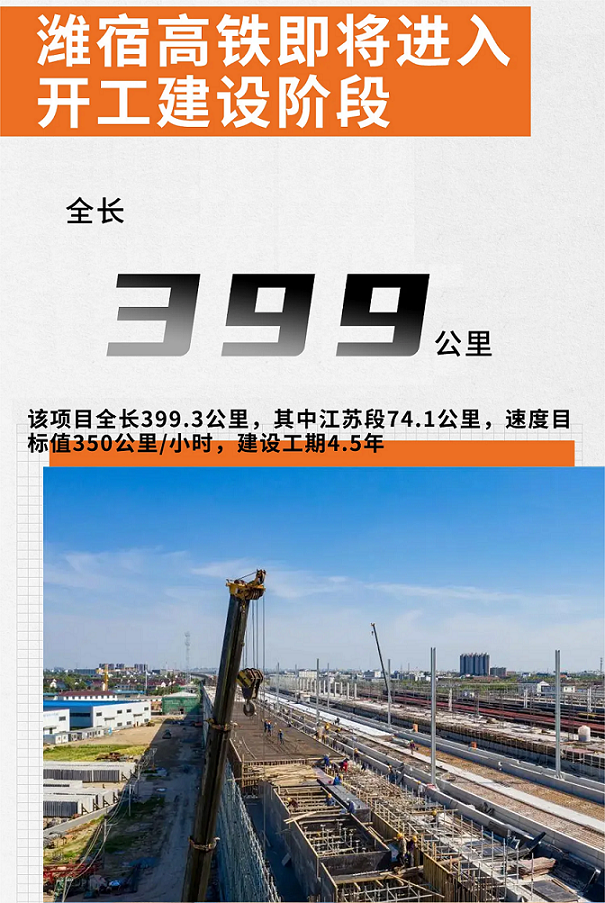 潍宿高铁是中长期铁路网规划中京沪辅助通道的组成部分,也是国家“十四五”铁路发展规划的建设项目。线路起自天津至潍坊高速铁路潍坊北站,经山东省日照市、临沂市,江苏省新沂市、宿迁市,在宿迁境内设宿迁东站后折向东,接入徐宿淮盐铁路洋河北站,全长399.3公里,其中江苏段74.1公里,速度目标值350公里/小时,建设工期4.5年。关键词:工程施工、工程新闻、工程建设资讯