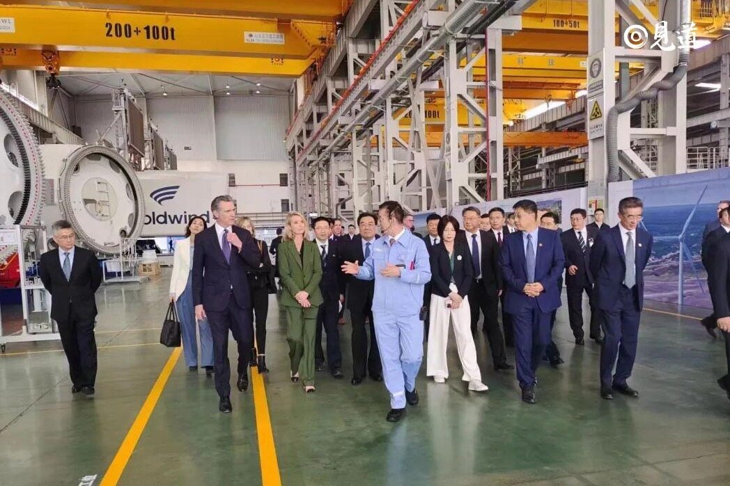 在活动期间,纽森一行参观了金风科技风电产品生产线、数字化控制系统等生产模块,并深入了解了金风科技当前的风电发展成果与国际合作情况。纽森对全球已吊装最大容量的金风科技16MW海上机组产生了浓厚兴趣,询问了该机组在不同海域的应用情况,并探讨了其在加州海域应用的可能性。在交谈中,双方还围绕海水淡化、风电制氢等展开探讨。参观结束后,纽森邀请金风科技进一步扩大在加州的业务版图,并在清洁能源领域开展更深层次的互利合作。