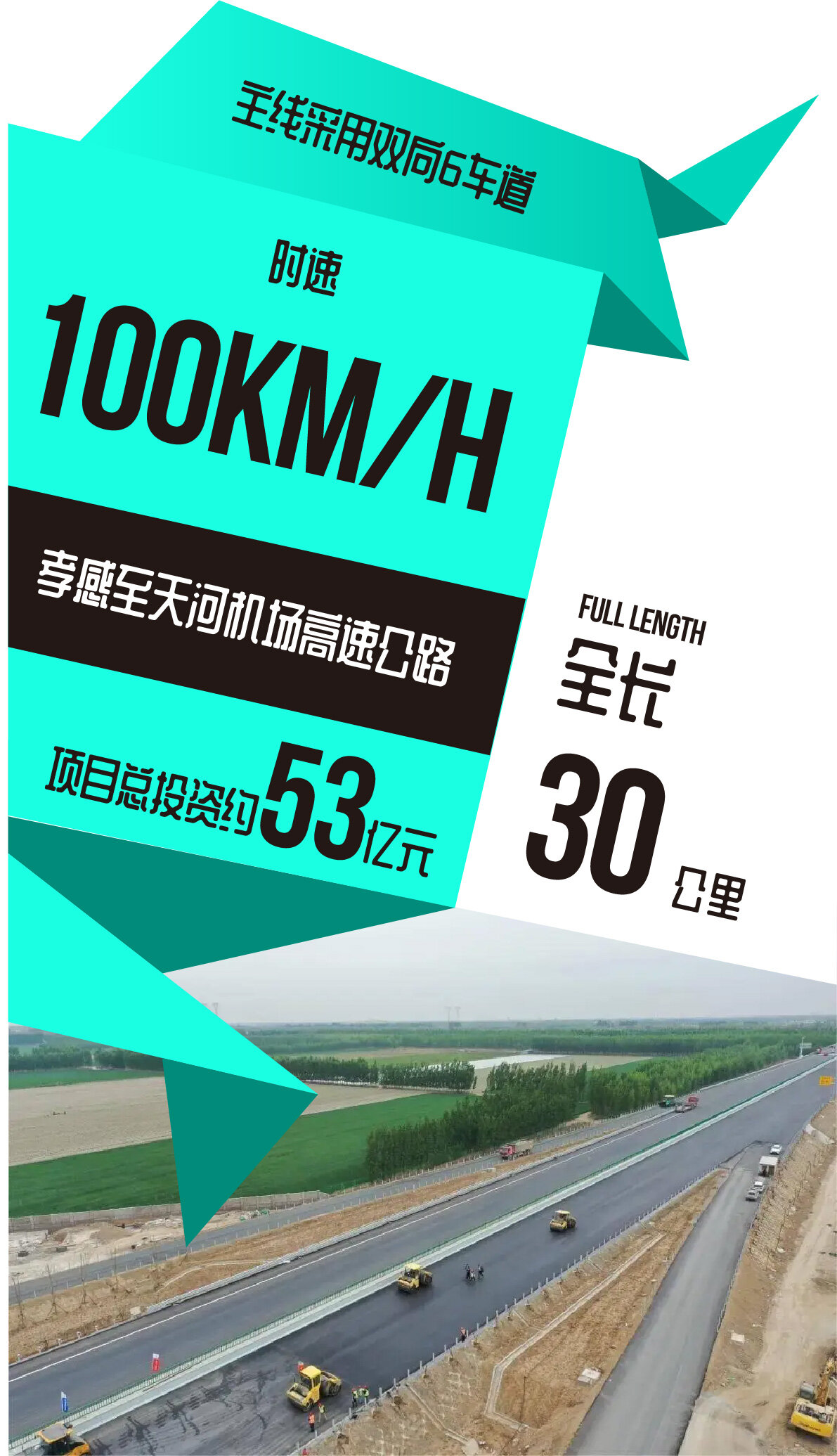 建设规模:孝感至天河机场高速公路工程包含:孝感至天河机场高速公路规划路线西起槐荫大道澴川路口,向东展线,将现有的槐荫大道东延伸线进行快速化改造,在三汊镇拓新村附近折向南,接纵五路规划线位,沿野猪湖东侧布线,穿越临空区西侧,终点接童家湖特大桥北侧桥头,与武汉机场高速和机场二通道连接,项目主线全长约30公里。