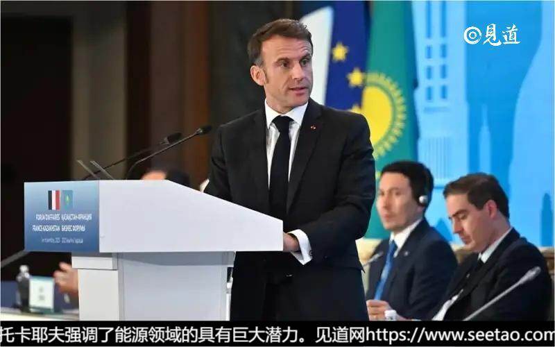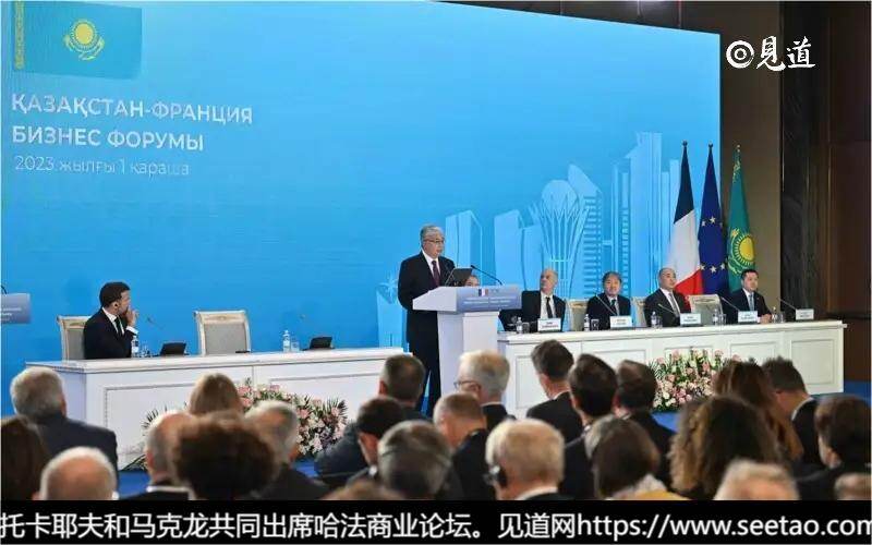 当天,托卡耶夫与马克龙共同出席了哈萨克斯坦-法国商业论坛并发表了讲话。