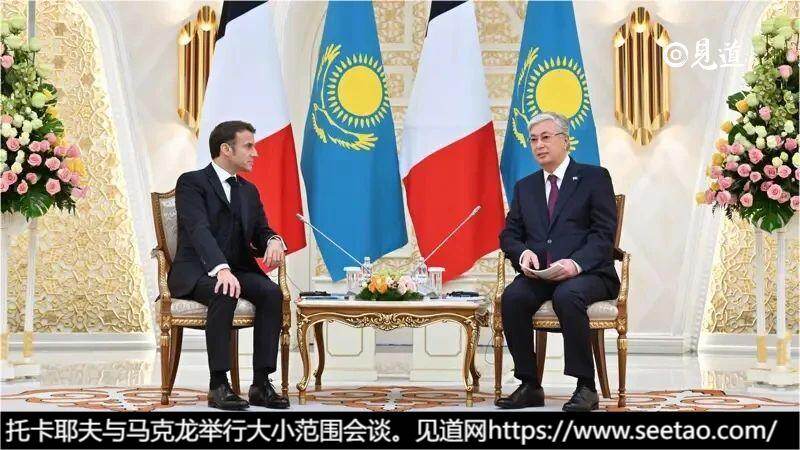 在小型会谈中,托卡耶夫将马克龙的此次访问称为“历史性的、非常重要的访问”,并强调法国是哈萨克斯坦在欧盟中首要且可信赖的伙伴,同时也是哈萨克斯坦经济领域最大的投资者之一。马克龙则表示,此次“面对面交谈”正逢两国关系极为重要的一年。