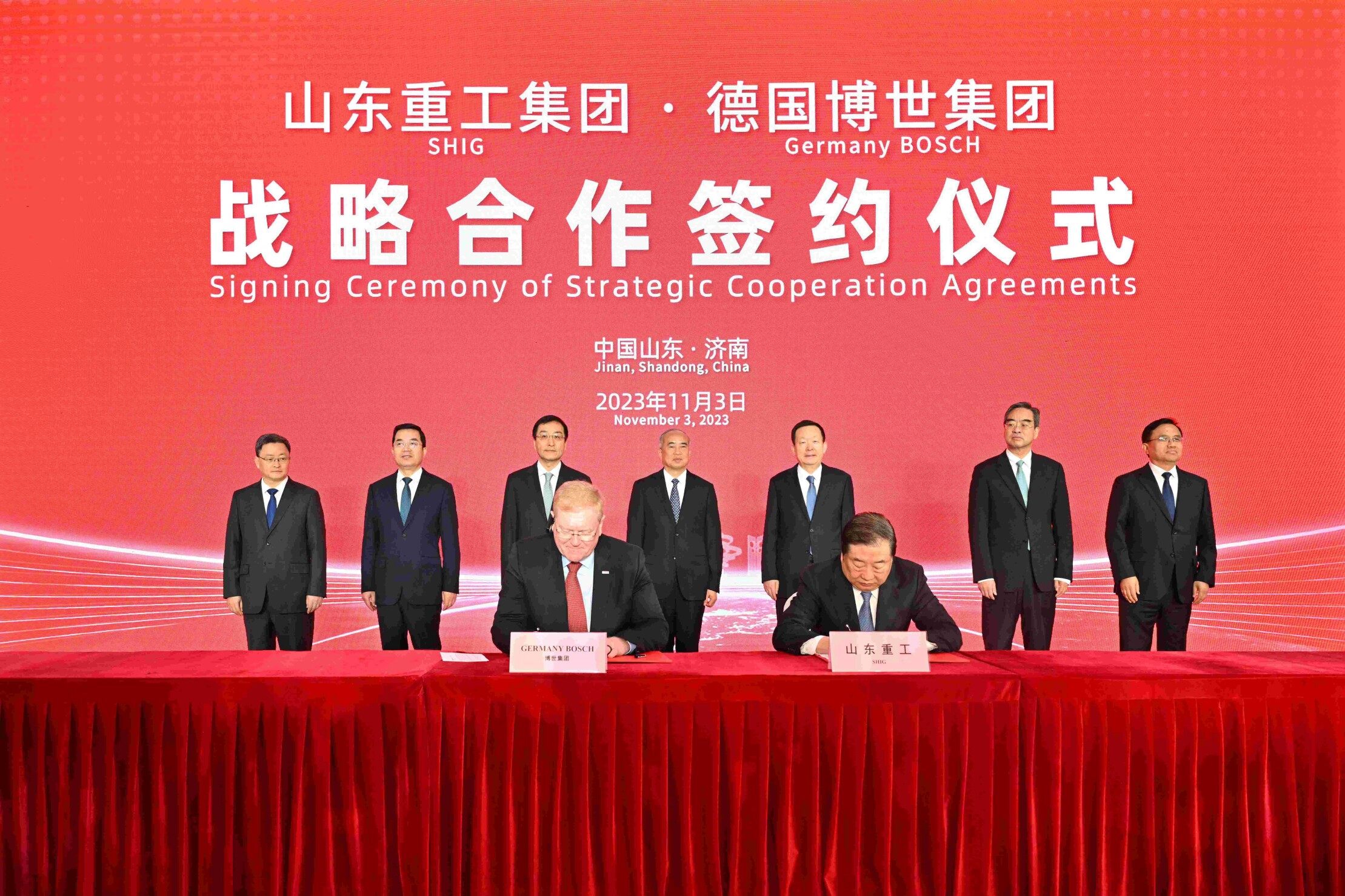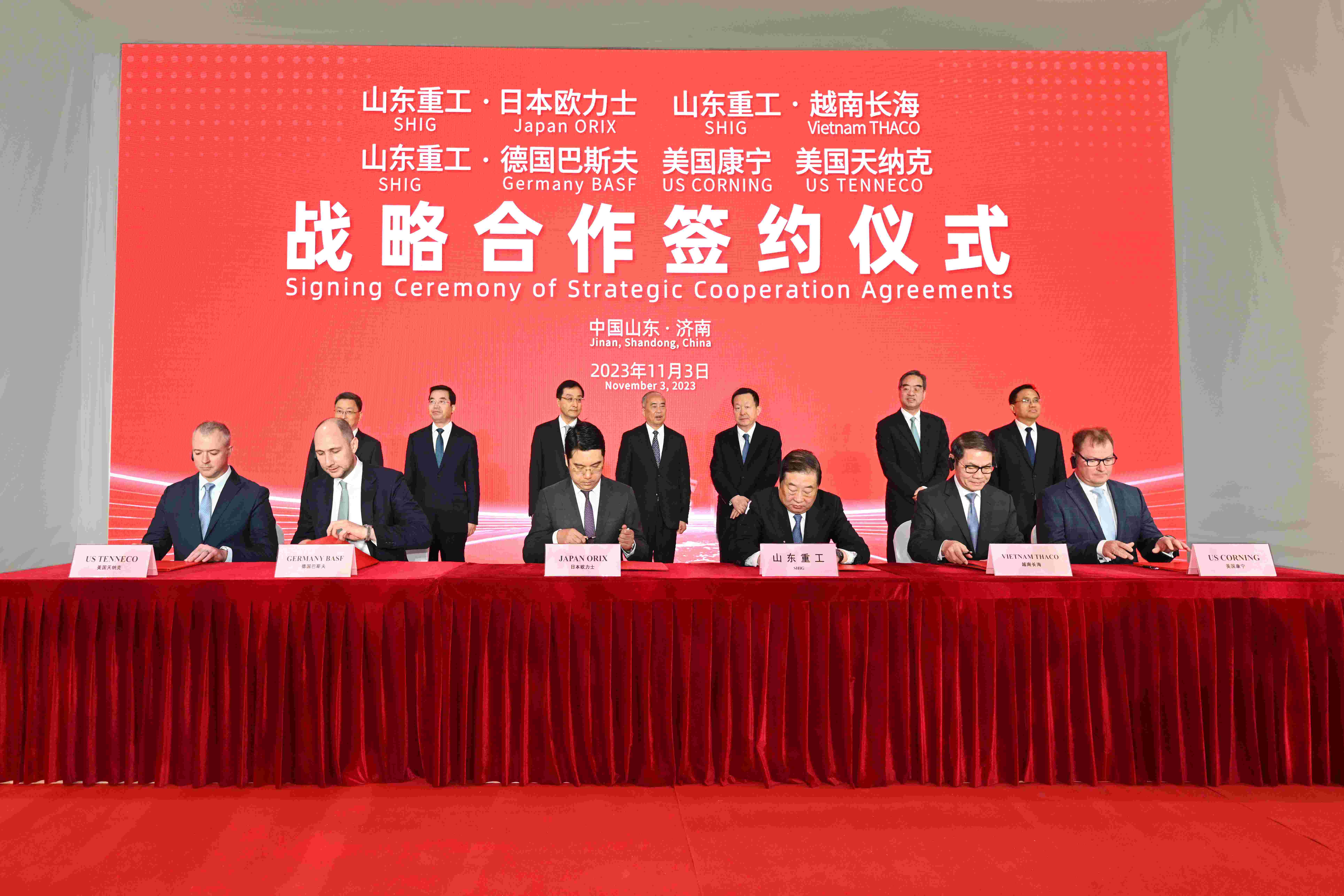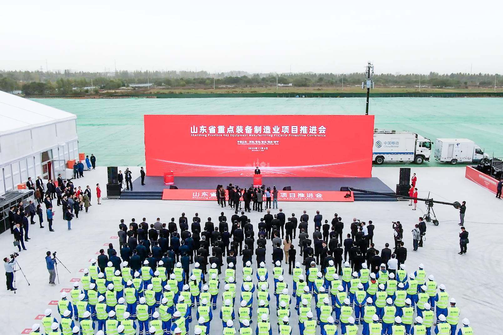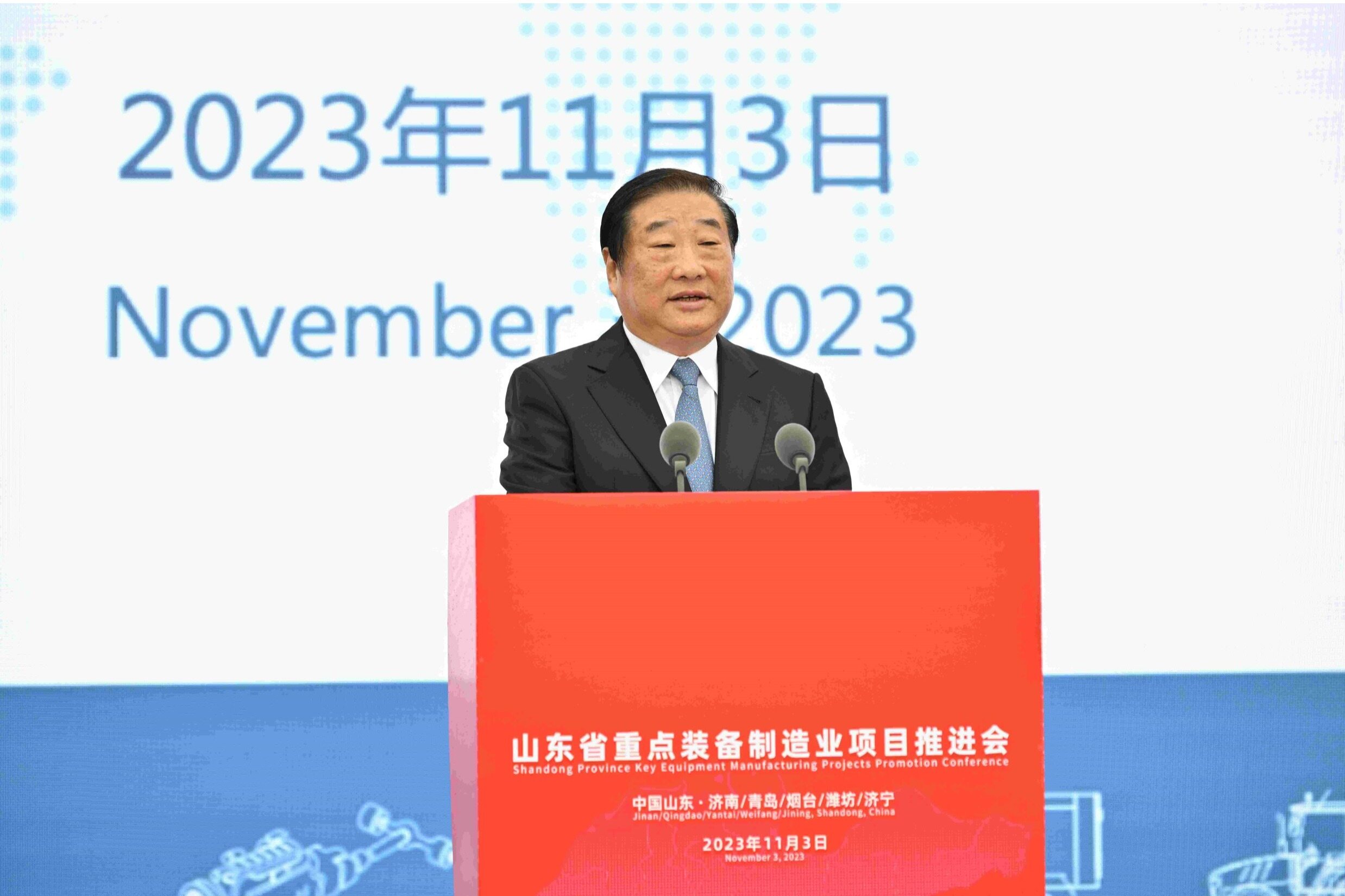 2023年11月3日上午,山东省重点装备制造业项目推进会举行,会议以“主会场+现场视频连线”方式进行。主会场设在济南莱芜,青岛、烟台、潍坊、济宁等地设分会场。省委书记林武见证山东重工与世界知名企业合资合作项目签约,省委副书记、省长周乃翔讲话并宣布开工投产。