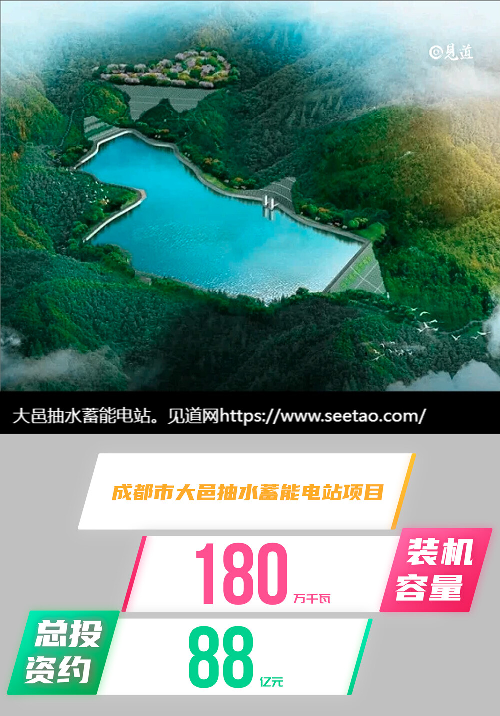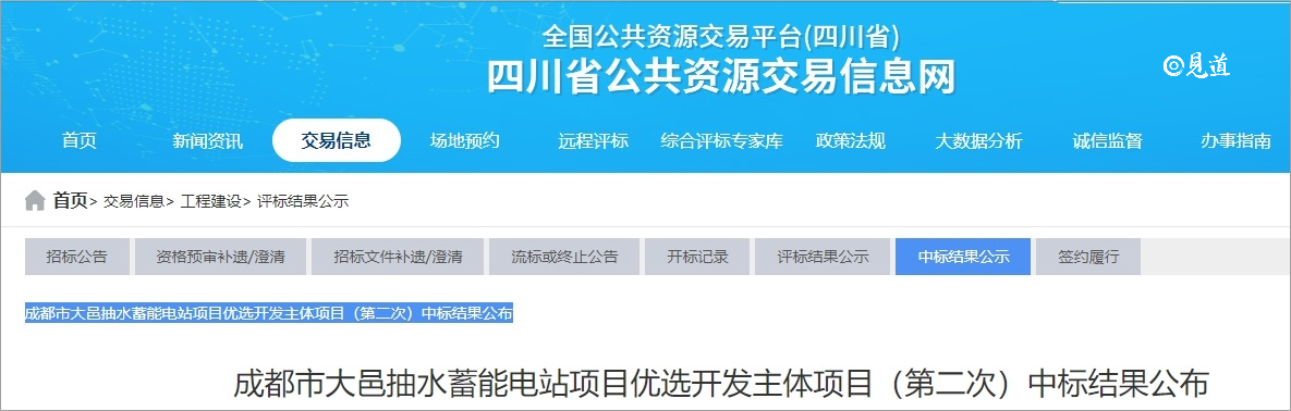 2023年11月3日,见道网记者从四川省公共资源交易中心了解到成都市大邑抽水蓄能电站项目优选开发主体项目第二次中标结果已公布,该项目匡算投资约88亿元。