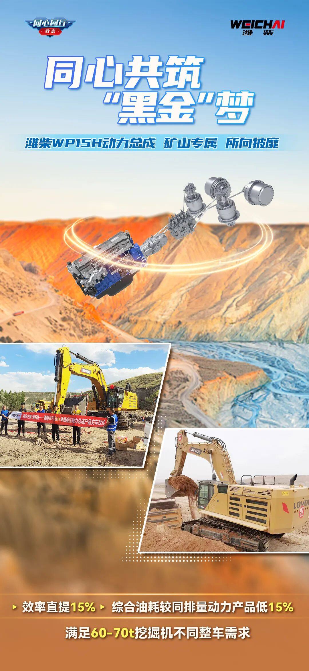 近日,搭载潍柴WP15H液压动力总成挖掘机交付内蒙古市场,点燃草原热情。内蒙古鄂尔多斯民达煤矿用户陈师傅表示,潍柴WP15H液压动力总成,全系列新一代发动机加高品质液压系统,大排量、大马力,不论是施工效率,还是节油表现,都堪称完美!