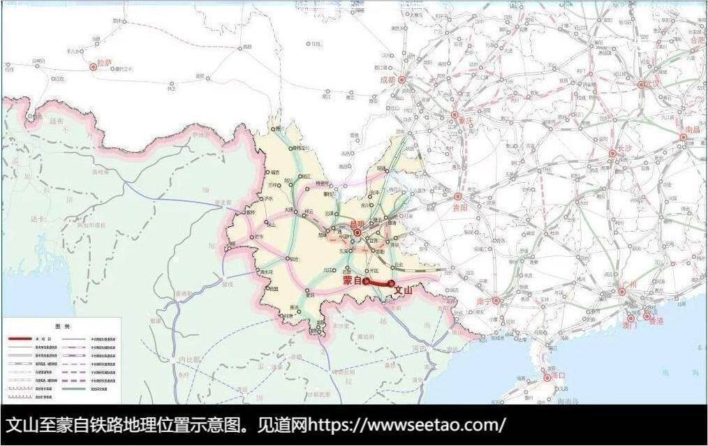 文山至蒙自铁路是中长期铁路网规划中的西南沿边铁路,该项目连接文山州、红河州州府所在地,是滇中和滇东南城市群之间的便捷运输通道,滇西和滇西南地区的东出通道。项目向西在蒙自地区衔接规划蒙自至普洱铁路可沟通滇西南各地及口岸,衔接弥勒至蒙自高铁可通达昆明;向东在文山地区衔接规划的文山至富宁至靖西铁路连通北部湾地区。