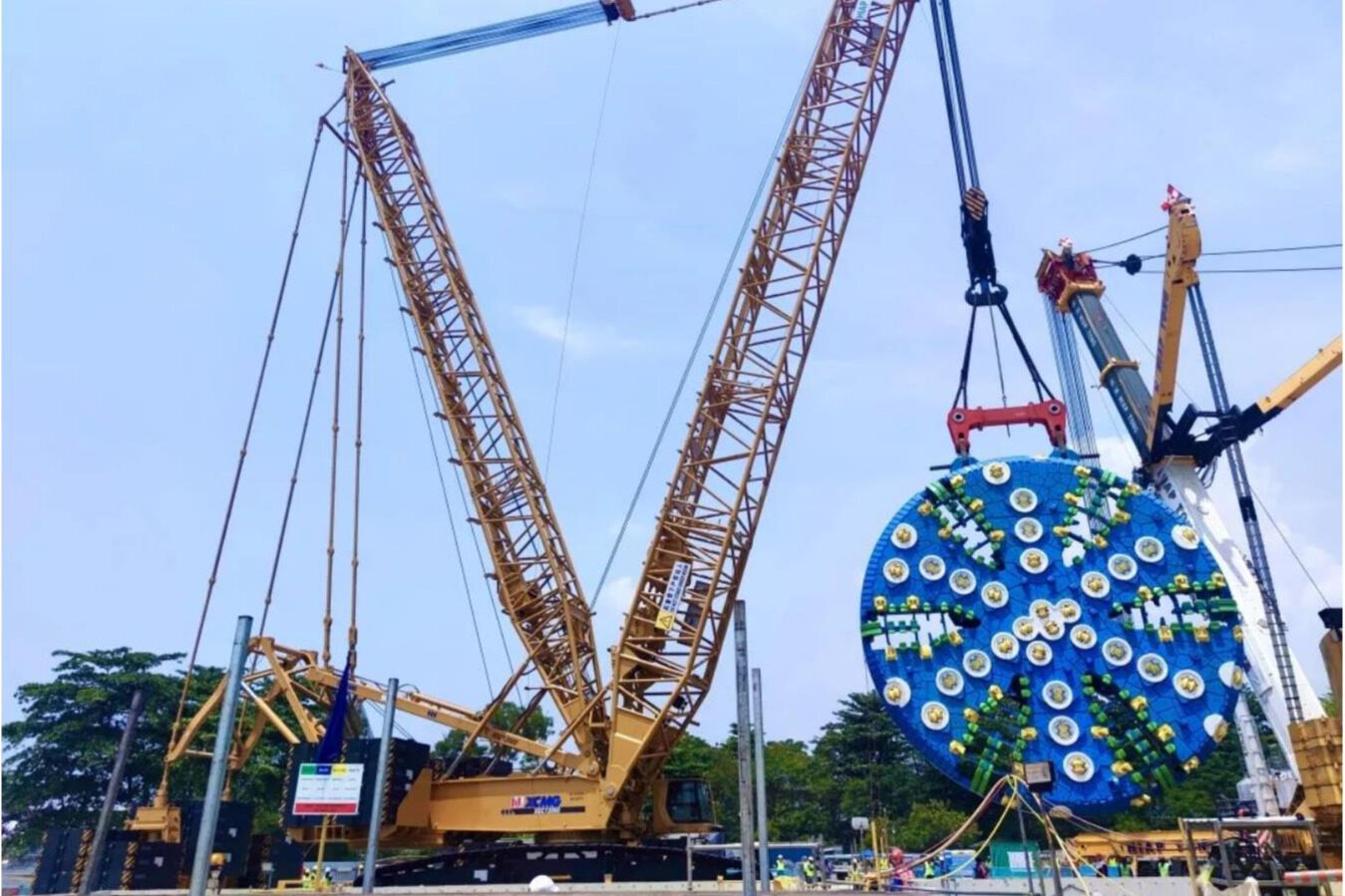 近日,XGC12000(800吨)履带起重机现身一带一路沿线国家——新加坡,并于当地跨岛线首个隧道开凿项目中助力中铁1108号盾构机成功安装。