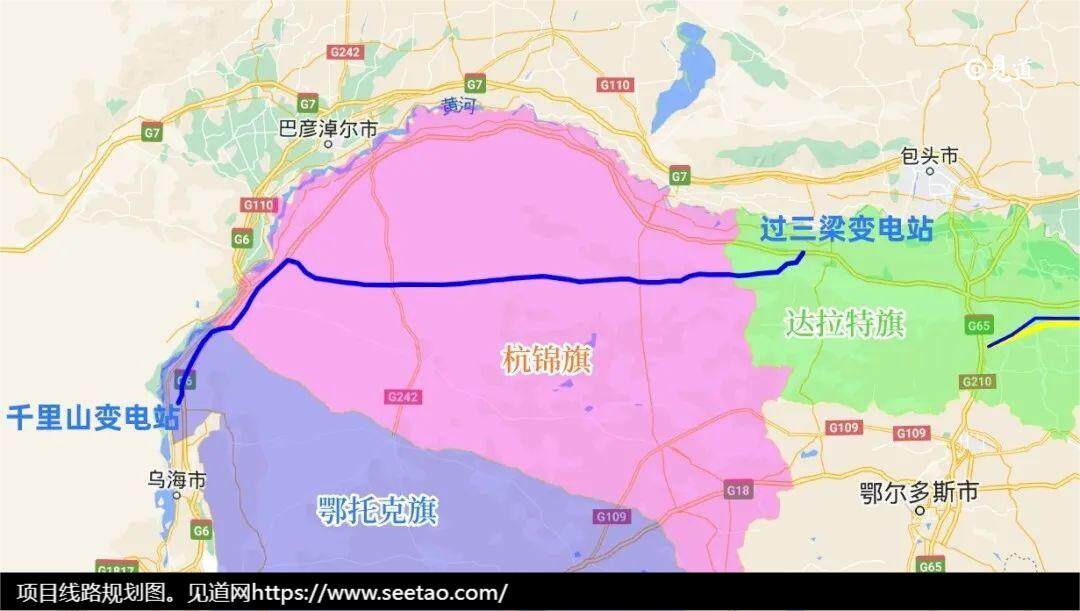 该项目位于内蒙古鄂尔多斯市境内,包括新建过三梁到千里山的双回500千伏线路,同时对千里山500千伏变电站和过三梁500千伏变电站进行扩建间隔等工程。