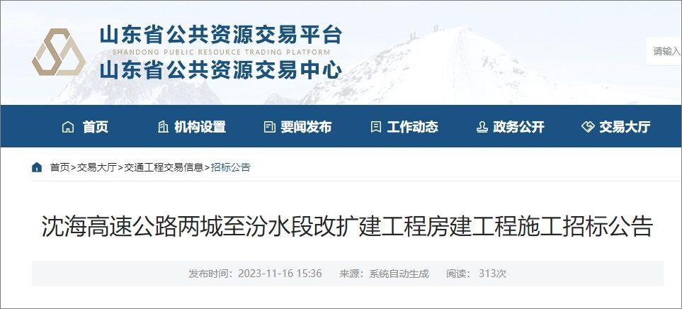 2023年11月17日,山东省公共资源交易中心发布了沈海高速公路两城至汾水段改扩建工程房建工程施工招标公告,该项目所属行业公路,项目总投资83.4亿元。