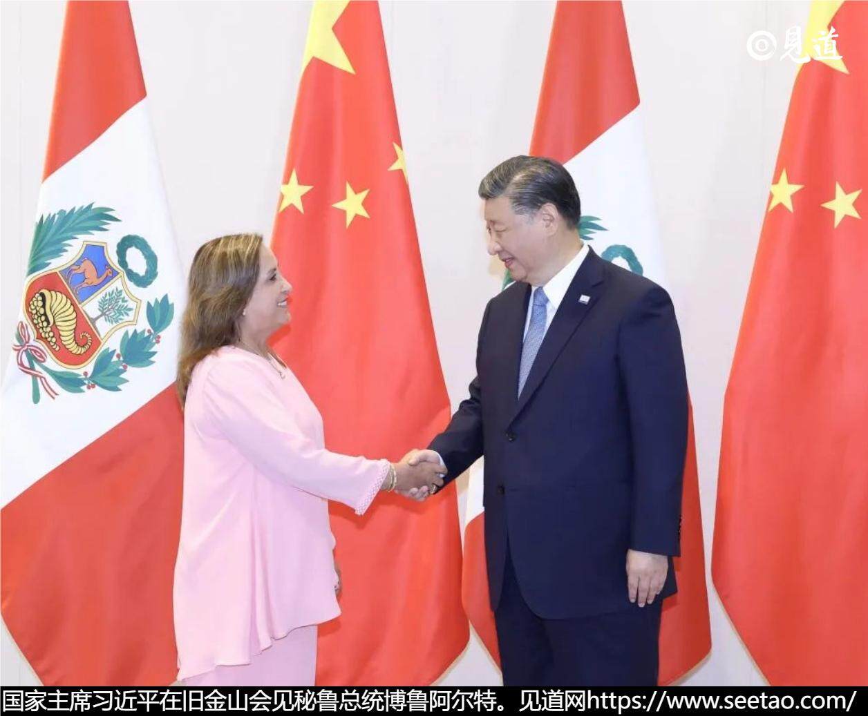 当地时间11月16日上午,国家主席习近平在旧金山会见秘鲁总统博鲁阿尔特。习近平指出,中秘建交半个多世纪以来,两国在涉及彼此核心利益和重大关切问题上相互理解和支持,双边合作稳步发展,特别是共建“一带一路”,促进了各自国家发展振兴,给两国人民带来福祉。今年是中秘建立全面战略伙伴关系10周年。双方要深化政治互信,加强战略沟通,坚定支持对方走符合本国国情的发展道路,加强发展战略对接,做强经贸、能源矿产等传统领域合作,培育数字经济、绿色发展等合作新增长极,推动共建“一带一路”取得更多成果。中方愿进口更多秘鲁特色优质农产品,鼓励中国企业按照市场化原则参与秘鲁重大项目建设。中秘都拥有灿烂文明和深厚文化,双方应该加强教育、文化、旅游、科技、青年交流等合作,成为不同文明交流互鉴的表率。