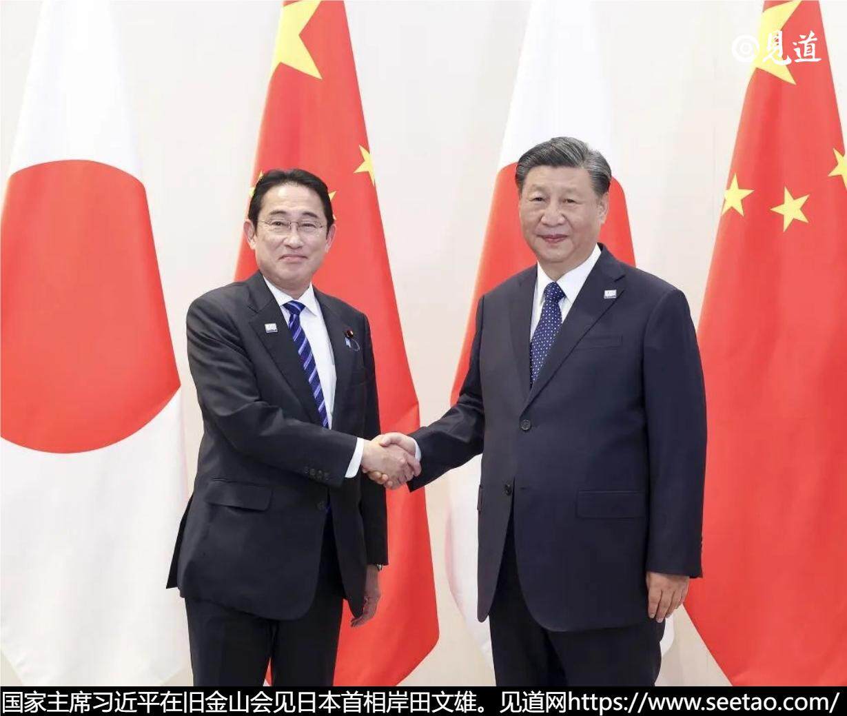 当地时间11月16日下午,国家主席习近平在旧金山会见日本首相岸田文雄。两国领导人重申恪守中日四个政治文件的原则和共识,重新确认全面推进战略互惠关系的两国关系定位,致力于构建契合新时代要求的建设性、稳定的中日关系。