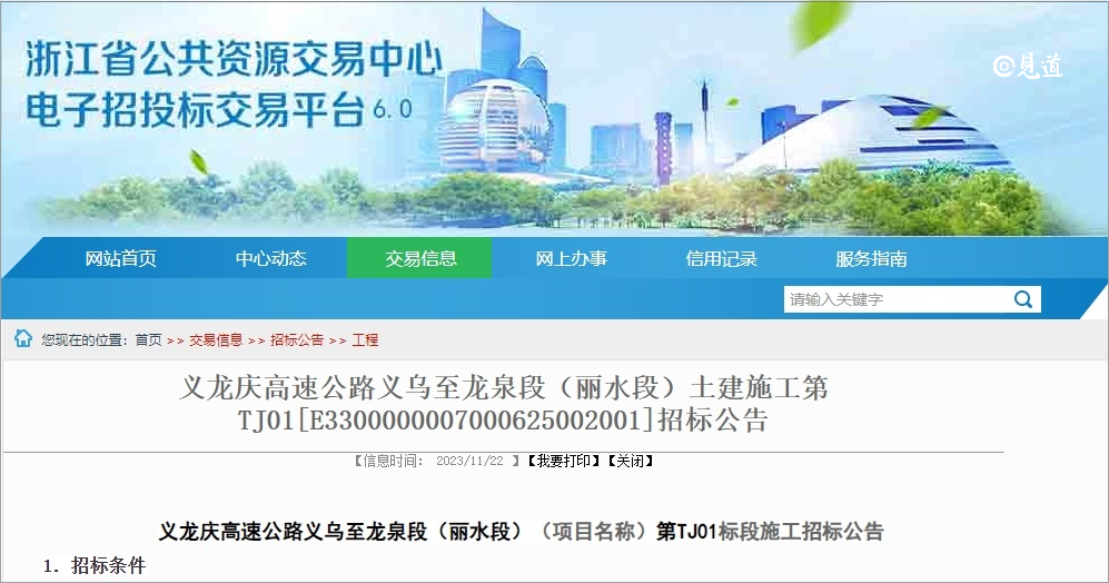 2023年11月22日,浙江公共资源交易中心发布了义龙庆高速公路义乌至龙泉段(丽水段)土建施工招标公告,该项目所属行业公路,项目总投资约216.4亿元,其中建安费约145.37亿元。