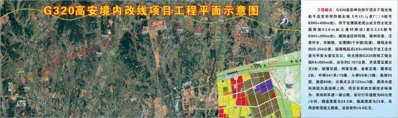 The G320 Gao'an relocation project is a key project included in the 14th Five Year Plan for transportation development in Jiangxi Province. The relocation starts from Guanxi Village in the north of Xiangfu Town, Gao'an City, and ends near the southwest of the Tiger Mountain Anti Japanese Martyrs Memorial Park in Longtan Town. The route passes through five townships and streets, including Xiangfu Town, Ruizhou Street, Wangjiawei Township, Shinao Town, and Longtan Town, with a total length of about 25.25 kilometers; The connecting line with Longgong North Avenue is approximately 2.16 kilometers long. The main technical standards adopted for the project are: two-way four lane first-class highway, with a design driving speed of 80 km/h, a subgrade width of 24.5 meters, and a pavement width of 23 meters. The asphalt concrete pavement is adopted, with a total investment of about 1.77 billion yuan. The land for this project has been approved, and the entire project has officially started construction. The construction period is 2 years, and it is expected to be opened to traffic before the end of 2025.