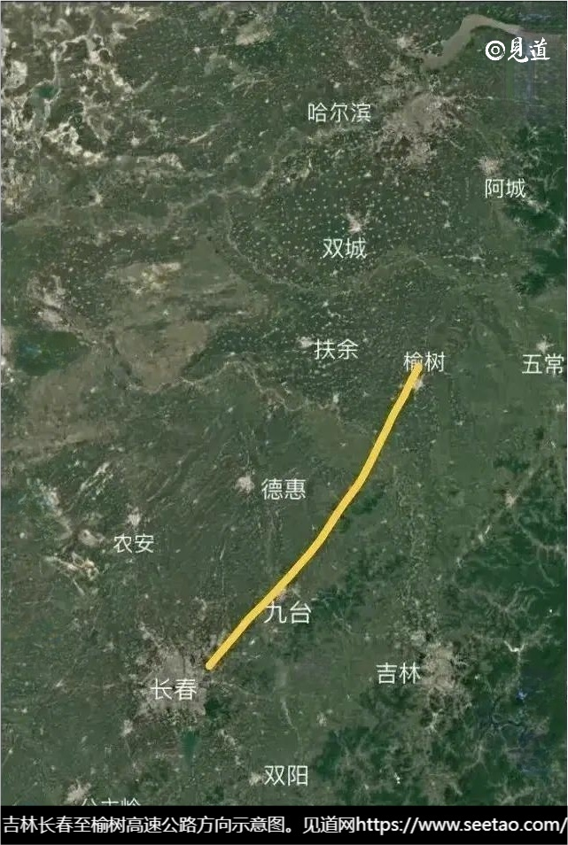 路线起于长春绕城高速与G102交叉处附近,设龙湖枢纽互通与长春绕城高速转换,设兴华互通与兴北大路衔接,路线向东北,经卡伦湖街道、龙嘉街道,在双丰村东南跨越饮马河,在苇子沟街道北设月明楼枢纽互通与在建的长春都市圈环线高速交叉,后继续向东北,经城子街街道、上河湾镇,在朝阳乡东北跨越松花江,经秀水镇、闵家镇,止于榆树市西北双井村北侧,设置万隆枢纽互通与铁科高速转换。
