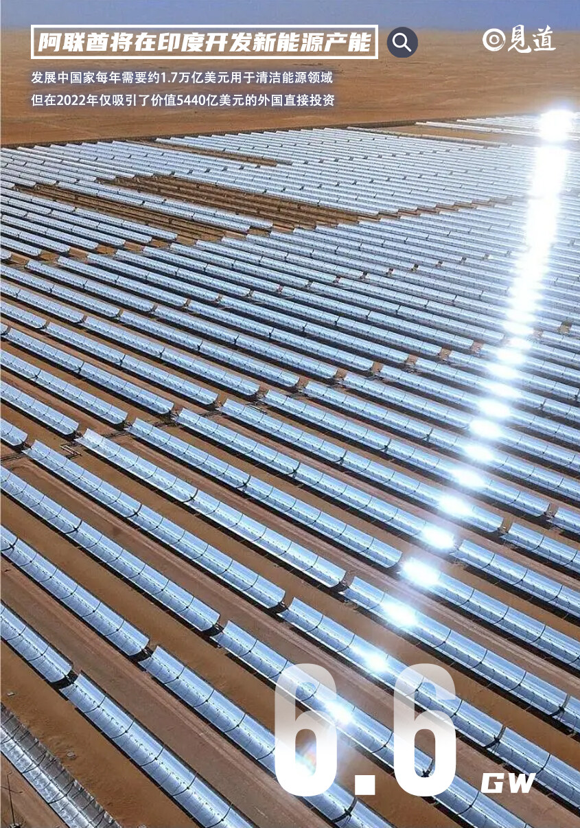 阿联酋将在印度开发6.6吉瓦的清洁能源产能,包括建设1200兆瓦的风能和太阳能项目。这些项目将使用阿联酋新宣布的300亿美元清洁能源基金提供资金,该基金由贝莱德、布鲁克菲尔德和TPG支持。