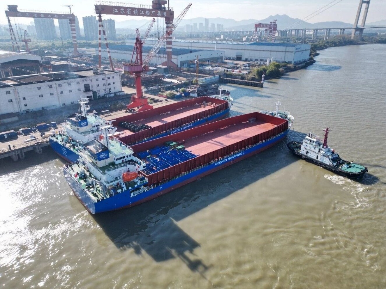 近日,由江苏省镇江船厂(集团)有限公司建造的2艘12000DWT自航驳船,在完成设备调试和所有试验项目后开赴非洲,为中远散运的几内亚铝土矿驳运项目增添新的力量。
