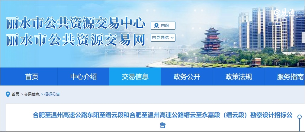 2023年12月11日,见道网记者从丽水市公共资源交易网获悉,合肥至温州高速公路东阳至缙云段和合肥至温州高速公路缙云至永嘉段(缙云段)勘察设计招标公告已发布,该项目所属行业公路,项目总投资204.8亿元。