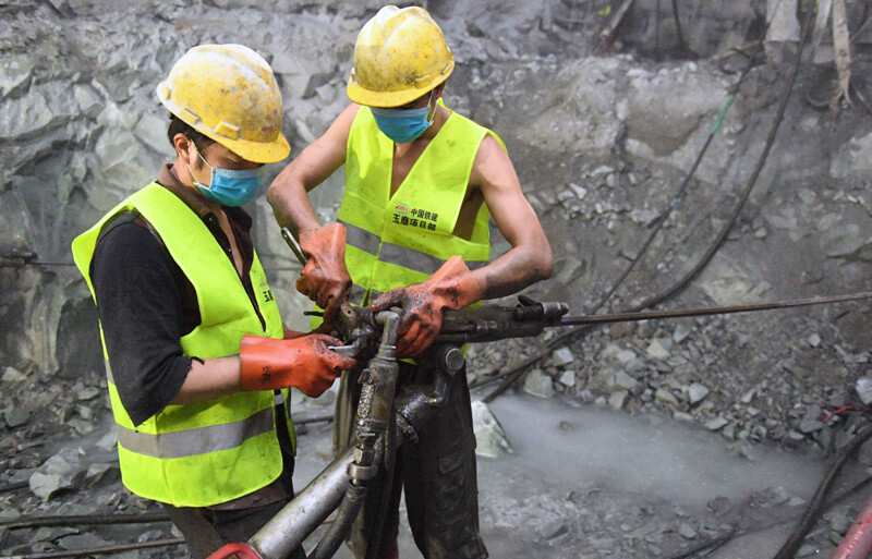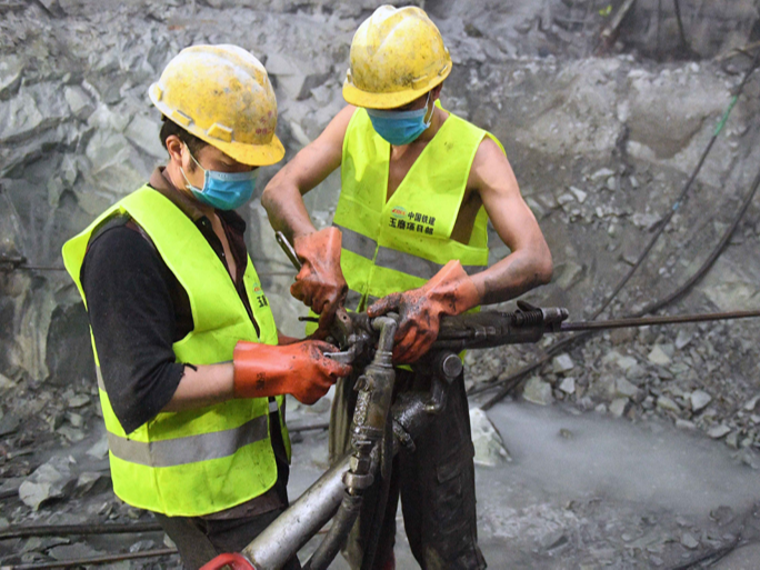 4月20日,中铁二十二局集团第五工程公司建设者在曼么1号隧道安装风枪