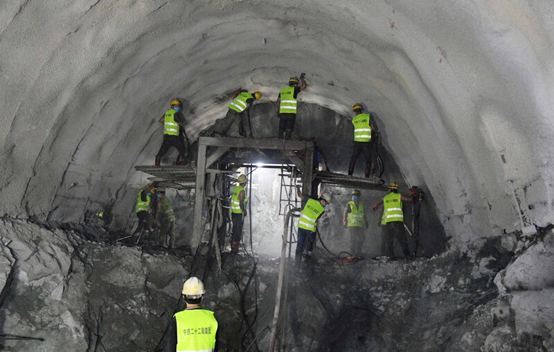 中铁二十二局集团第五工程公司建设者在曼么1号隧道施工
