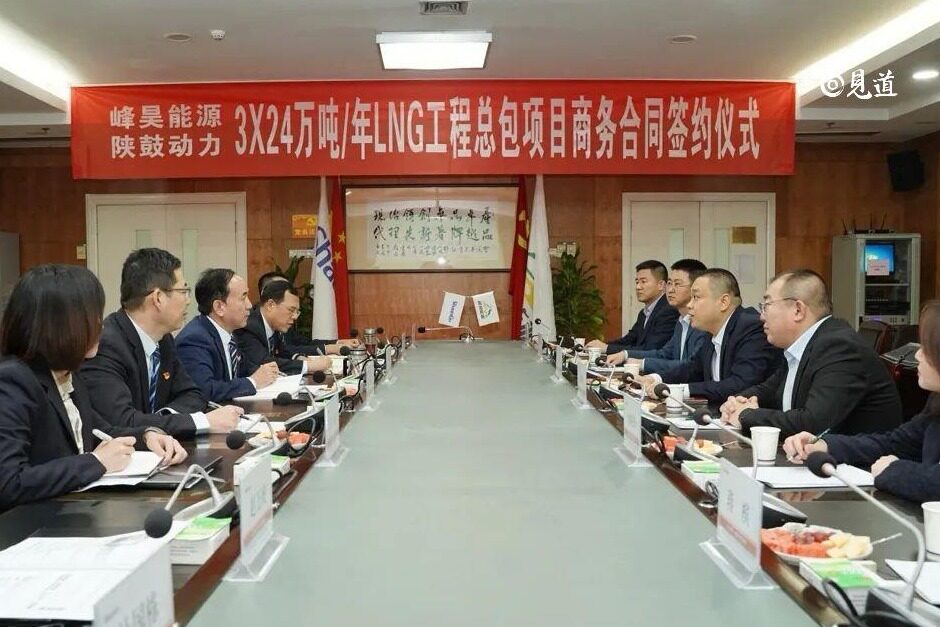 2023年12月28日,陕鼓集团与鄂尔多斯市峰昊国际能源有限公司签订了年产3×24万吨LNG项目一期24万吨LNG工程总承包合同。陕鼓将发挥能源互联岛EISS4.0系统方案优势,助力峰昊能源引领行业发展水平,打造标杆工程。