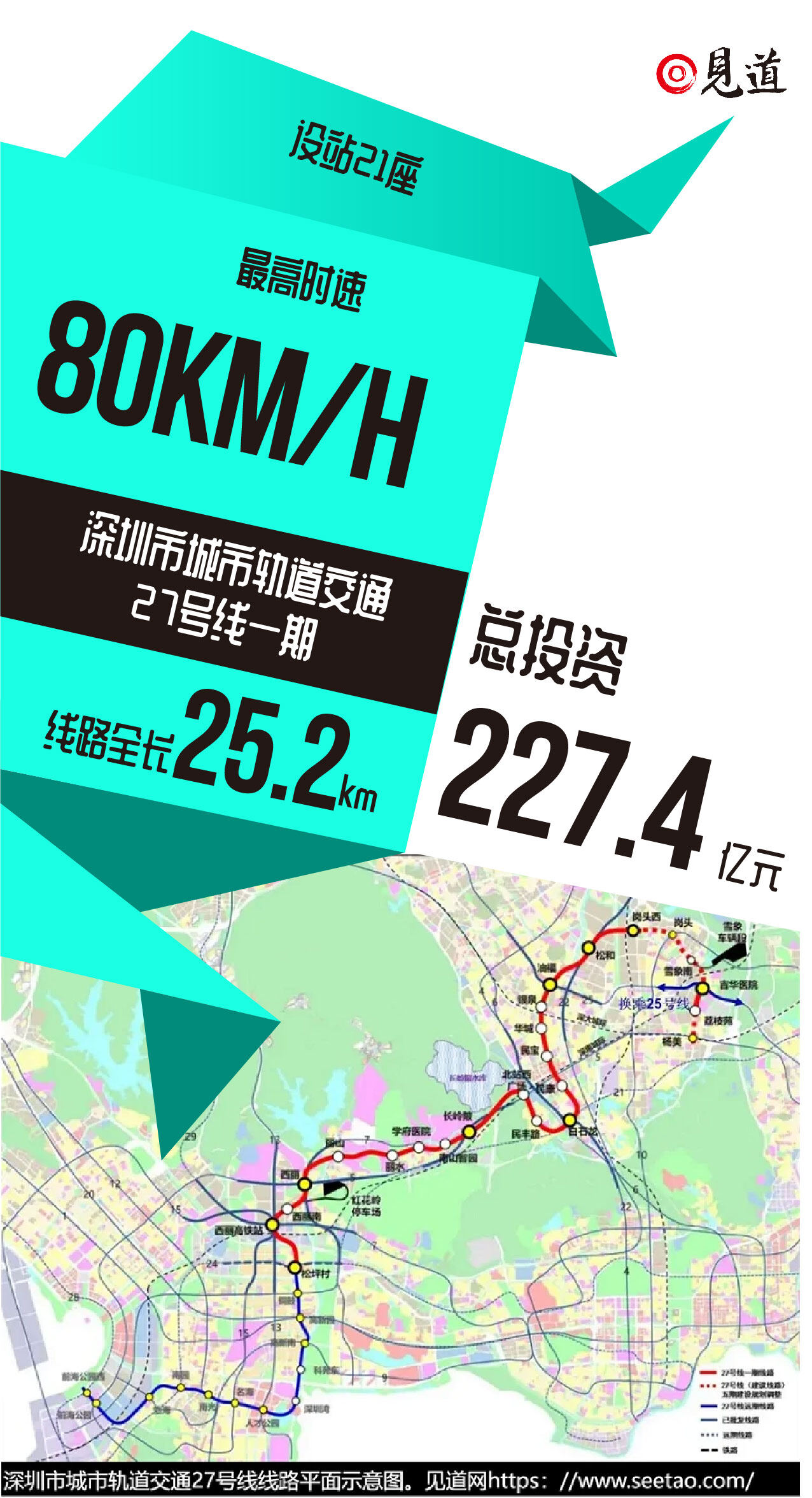 该工程位于深圳中西部发展轴,主要承担南山、龙华、龙坂轴向轨道联系功能,串联西丽高铁新城、西丽湖国际科教城、深圳北站商务中心及坂雪岗科技城,是支撑深圳都市核心区扩容、加快南山至坂雪岗重点片区发展、服务沿线通勤、集散枢纽客流、完善轨道网络的普速线路。线路分为两段,一段起于松坪村站,终于岗头西站;一段起于吉华医院站,终于杨美北站。线路全长25.2km,设站21座,其中换乘站9座,平均站间距1.29km,全线均为地下敷设。本线采用6辆编组A型车,全自动驾驶模式,DC1500V架空接触网供电,专用轨回流,最高设计时速为80km/h。全线设红花岭停车场一座,停车场出入场线接轨于文光站,改造既有西丽主变电所,共享既有雪象北主变电所、共享22号线黎光车辆段,在松和站与22号线设联络线,在吉华医院站与25号线设联络线,控制中心共享利用深云NOCC。关键词:工程施工、工程建设资讯、工程新闻