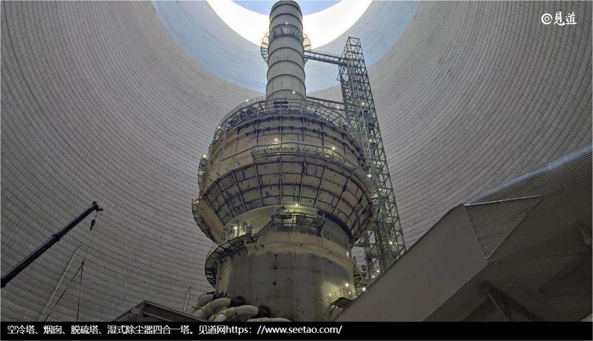 百万机组四塔合一技术。这一创新设计将空冷塔、烟囱、脱硫塔和湿式除尘器统一集成,极大地提高了设备的集成度和运行效率。充分发挥项目优势,将煤矿和电厂的工艺系统紧密结合,充分利用了煤矿现有的卸储筛系统。这不仅简化了工艺流程,优化了布置结构,还显著降低了工程造价和用地需求,相较于其他同规模的电厂项目,清水川三期项目节约了315亩用地,成为国内百万机组项目占地面积最小电厂之一。
