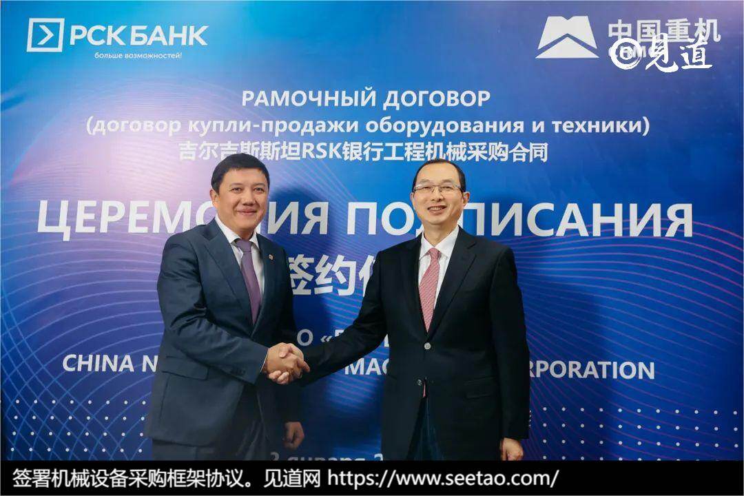 在中国重机党委书记、董事长肖平与吉尔吉斯斯坦RSK银行总裁乌兰别科·纳卡耶夫的共同见证下,双方在吉尔吉斯斯坦首都比什凯克成功签署了工程机械设备采购框架合同。
