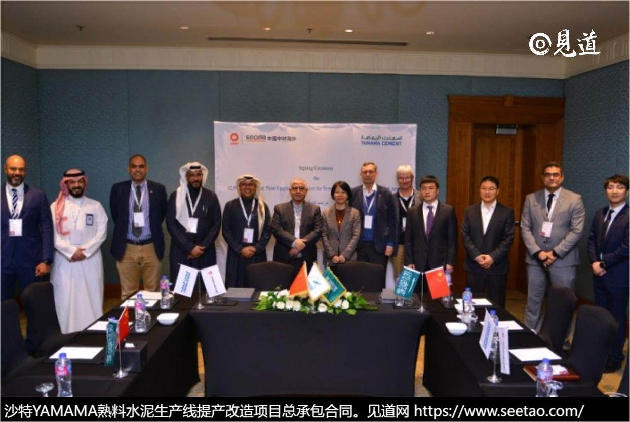 中国中材海外科技发展有限公司与沙特阿拉伯YAMAMA水泥公司于埃及首都开罗正式签署了日产12500吨熟料水泥生产线提产改造项目的总承包合同。
