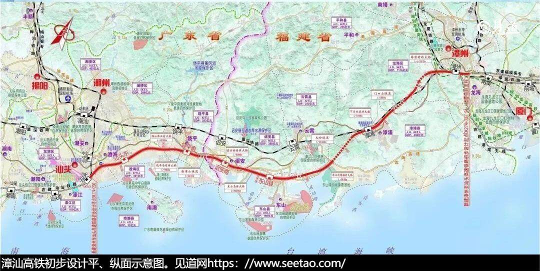 漳汕高铁连接汕广高铁和福厦漳高铁,与温福高铁、甬台温高铁共同构成国家东南沿海时速350公里的高铁通道。到2028年,沿海高铁通道福州至广州段将实现贯通。届时,广州东至福州南的高铁运行时间将缩短至4小时以内。