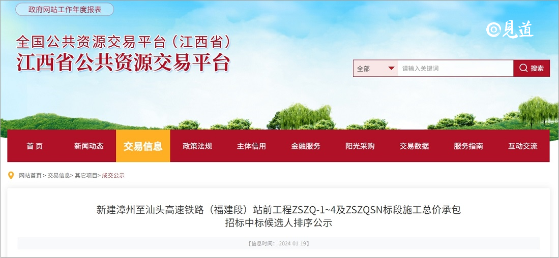 2024年1月18日、19日,新建漳州至汕头高速铁路广东段、福建段站前工程施工总价承包招标中标候选人公示相继发布。漳州至汕头高铁预计于1月底全线开工建设。