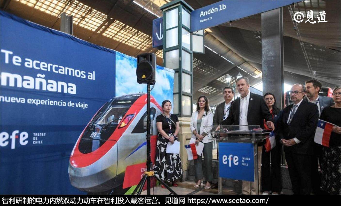中国中车四方股份公司为智利研制的电力内燃双动力动车组已于1月19日在智利投入载客运营,服务于阿拉梅达至库里科区间。这款动车组最高时速可达160公里,成为南美洲最快的轨道列车。