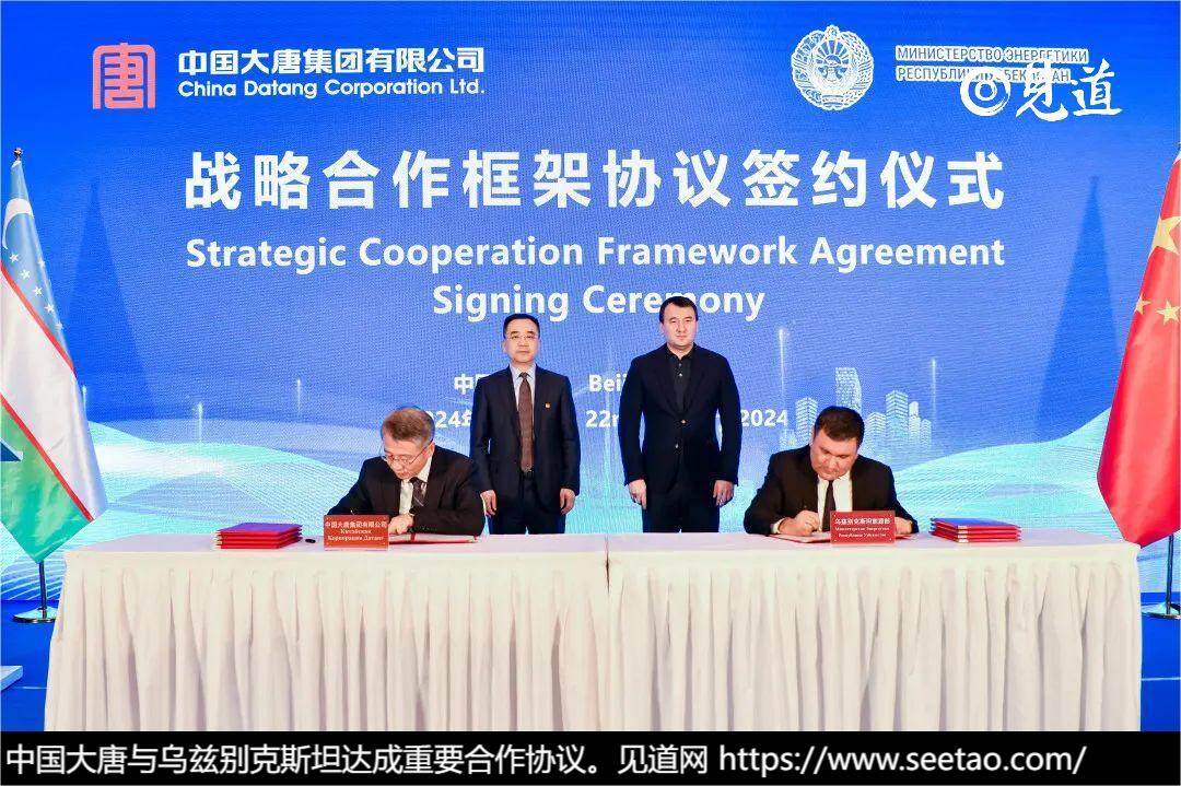 中国大唐集团有限公司与乌兹别克斯坦能源部等部门和企业在北京签署了五项协议,其中包括《战略合作框架协议》。中国大唐党组书记、董事长邹磊和乌兹别克斯坦副总理霍扎耶夫出席了签约仪式并发表了致辞。在签约仪式前,邹磊与霍扎耶夫举行了会谈,就深化能源合作进行了深入友好的交流。