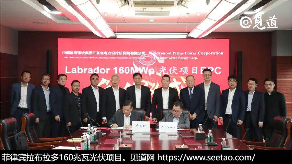 中国能建广东院与菲律宾Advance Prime Power集团旗下的拉布拉多绿色能源公司成功缔结了菲律宾拉布拉多160兆瓦光伏项目的工程、采购、施工一体化合同。