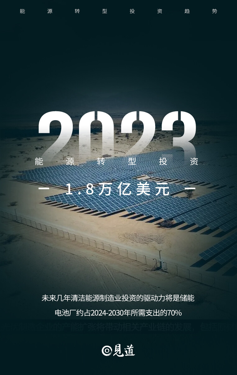 BNEF的报告发现,与2022年相比,2023年全球对新可再生能源发电和储存项目的投资增长了8%,达到6230亿美元。这比电动交通部门的扩张更为温和,电动交通部门在2023年首次成为支出最大的部门,同比增长35%,达到6340亿美元。