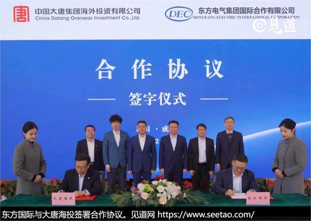 东方电气集团国际合作有限公司与大唐集团海外投资有限公司在成都签署了合作协议。出席仪式的有东方电气集团副总经理李忠军,东方电气股份有限公司副总裁、东方国际党委书记、董事长李建华,以及大唐集团国际业务部主任、大唐海投党委书记、董事长、总经理贾炳军。此次合作将为双方带来更多的商业机会和更广阔的发展前景。