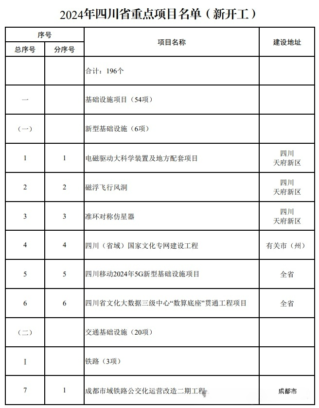 从项目类型来看,2024年,四川省将不断强化重点领域投资。突出加快构建现代化基础设施网络、一体推进科技创新和科技成果转化,确定基础设施项目269个,包括成达万高铁、引大济岷工程、国家实验室等项目。