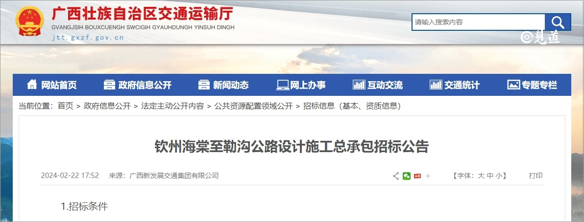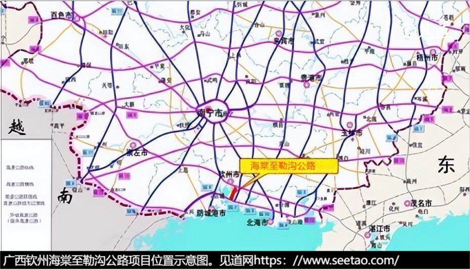 2024年2月22 日,广西壮族自治区交通运输厅发布了钦州海棠至勒沟公路设计施工总承包招标公告,本是自治区政府最新批复的《广西高速公路网规划(2018—2030 年)》中1环12横13纵25联中的联21,本项目将构筑起钦州市区与钦州港最为便捷的市内通道,是增强广西沿海城市沟通交流的需要,并在区域路网中起到重要的连接作用。拟建项目全线位于钦州市境内。