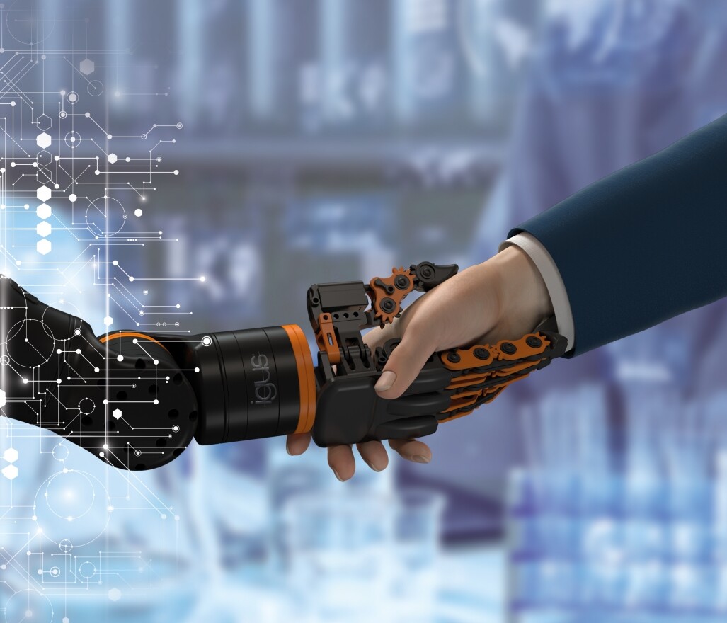 新机械手的所有组件,包括法兰、电缆和控制单元等,均由igus直接提供。因此,所有组件保证100%兼容。由于采用了免润滑的高性能工程塑料,因此产品的性价比很高。手爪的关节处采用的是由iglidur工程塑料制成的滑动轴承,它们不仅性价比高且免润滑,还确保每根手指顺滑且精确运行。在占地3800平方米的igus内部测试实验室里进行的大量测试证明,该仿人手的使用寿命很长。它们非常灵活,并能通过很多接口进行控制,如USB、TTL(5V)串行接口和内部脚本等。除机械手爪外,igus还为ReBeL环境提供了很多其他产品,比如防护服、第7轴、夹具套件、转接板套件、柔性拖链系统、工作台和连接电缆等。
