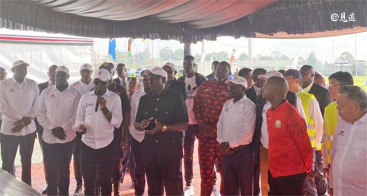 仪式上,肯尼亚国防部长亚丁·杜阿勒、青年事务、体育和艺术部长阿巴布,以及中国驻肯尼亚公使衔参赞张益俊等贵宾齐聚一堂,共同见证了这一历史时刻。