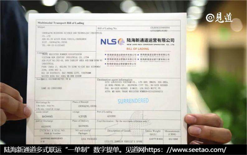 在深入了解该客户资金需求后,陆海新通道运营有限公司会同重庆农村商业银行,依托陆海新通道多式联运一单制数字提单,创新制定了一单制动产质押+提单转仓单+全程物流监管”的综合融资方案,为客户提供一揽子物流及金融服务。在该方案中,陆海新通道运营有限公司签发多式联运一单制数字提单,同时提供报关报检、港口提货、干线运输、仓储保管及末端送货等全流程物流监管服务。