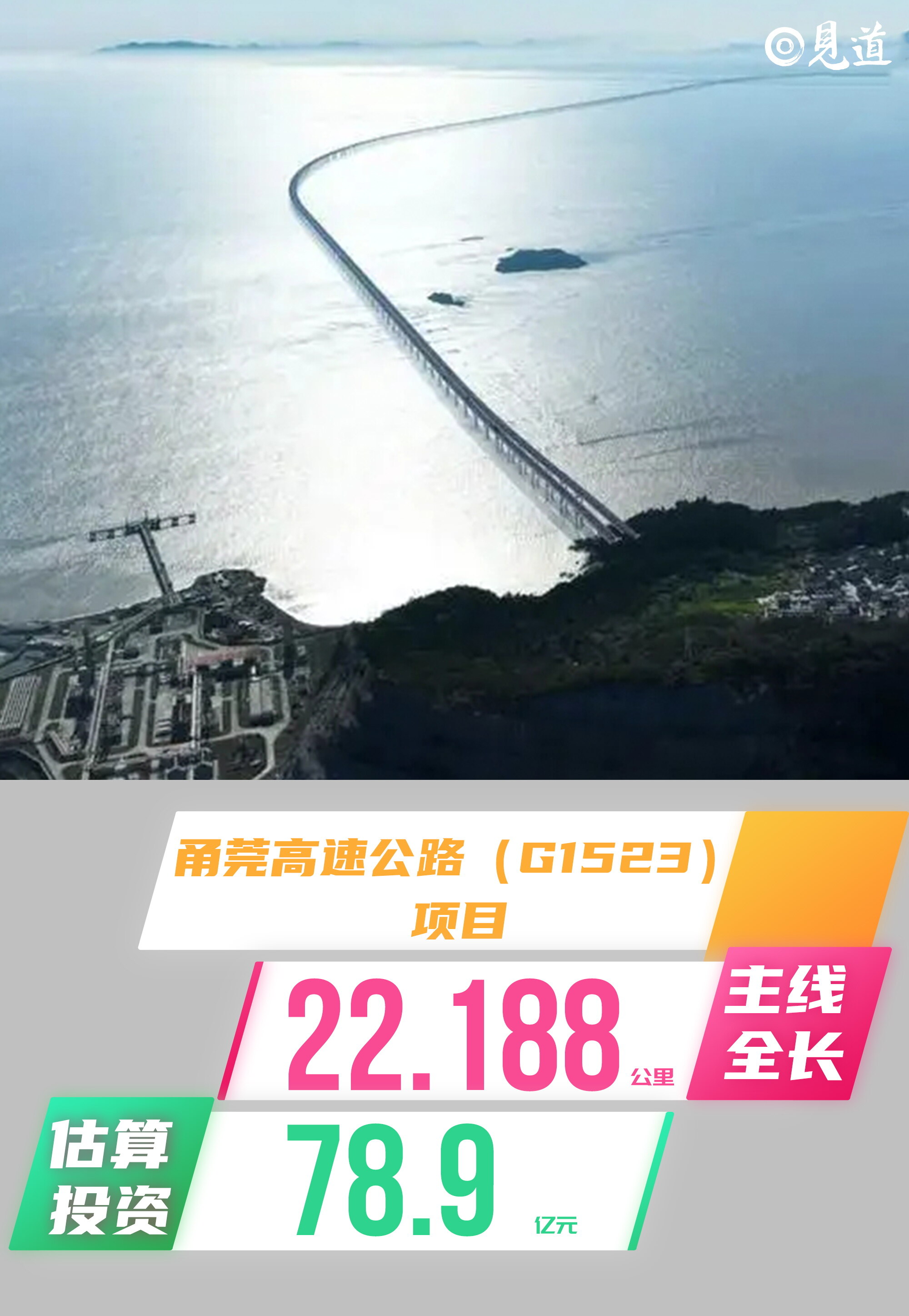 本项目起点位于温州湾新区(龙湾),顺接金丽温高速东延线向东布设,终点位于洞头区霓屿岛。主线全长22.188公里,采用双向四车道高速公路标准建设,设计速度为100公里/小时,项目估算投资为78.9亿元。