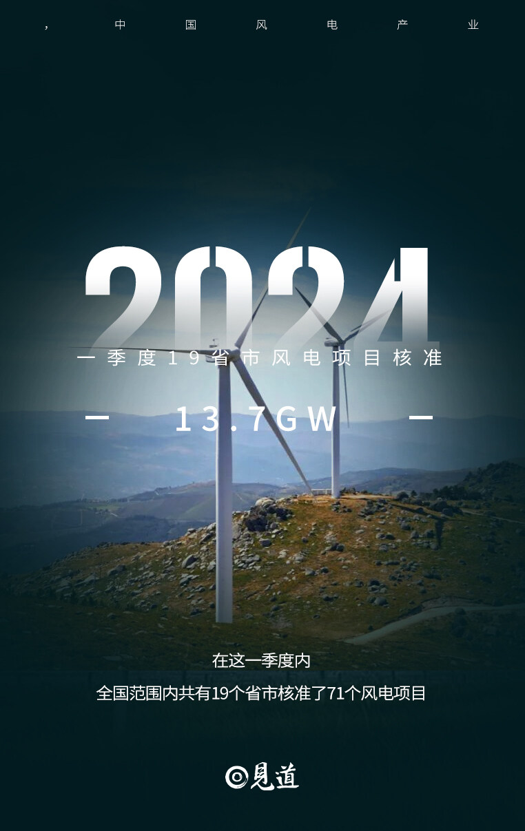 2024年一季度中国风电核准情况呈现出蓬勃发展的态势。随着国家对于清洁能源发展的政策支持力度不断加大以及技术的不断进步,未来中国风电产业将迎来更加广阔的发展空间。同时,各大企业也将在激烈的市场竞争中不断提升自身实力,推动中国风电产业向更高水平迈进。(此文出自见道官网:www.seetao.com未经允许不得转载否则必究,转载请注明见道网+原文链接)见道网战略栏目编辑/许生鹏