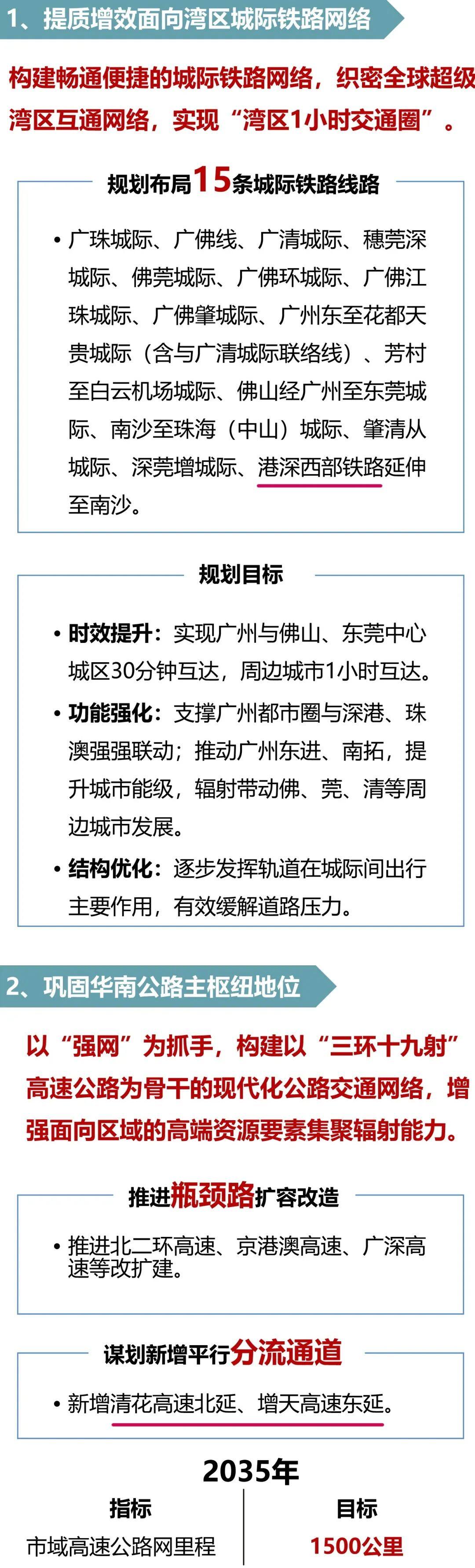 本次规划首次明确港深西部城际铁路延伸至南沙,有利于广州地铁18号线、南中城际发挥更大作用,也有利于南沙居民快速使用宝安机场或去往前海、香港。