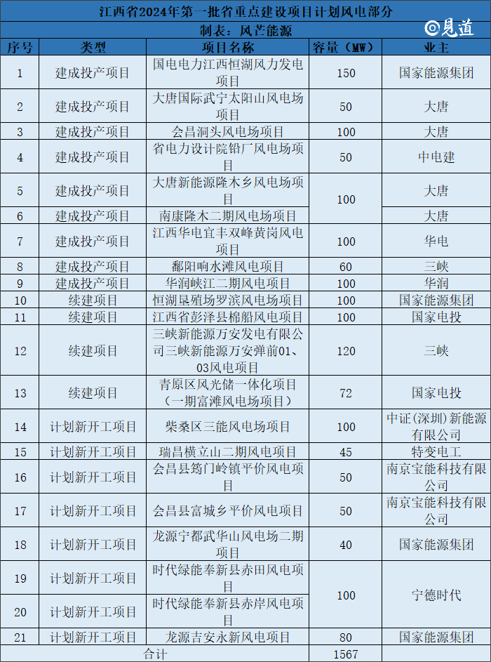 特别值得一提的是,这批重点项目中还包括了21个风电项目,总容量达到了1.567GW。这一举措无疑将有力推动江西省新能源产业的发展,助力实现绿色低碳的能源转型。