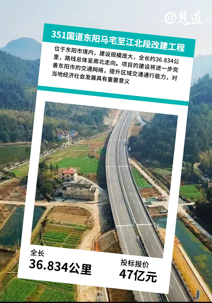 此次中标的公路大单位于东阳市境内,建设规模庞大,全长约36.834公里,路线总体呈南北走向。项目的建设将进一步完善东阳市的交通网络,提升区域交通通行能力,对当地经济社会发展具有重要意义。