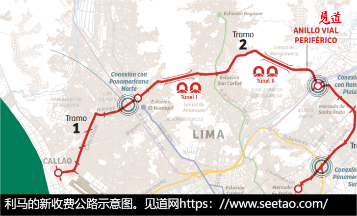 秘鲁首都利马即将迎来一项耗资34亿美元的公路项目,该项目由Anillo Vial Periférico财团负责,该财团由Ferrovial、Acciona和Sacyr三家公司组成,并将根据特许权管理利马的周边环路。该项目的资金来源于Ferrovial政府通过其收费公路子公司Cintra提供的公共资金,其中Ferrovial拥有该财团35%的股份,而Sacyr和Acciona则各自持有32.5%的股份。