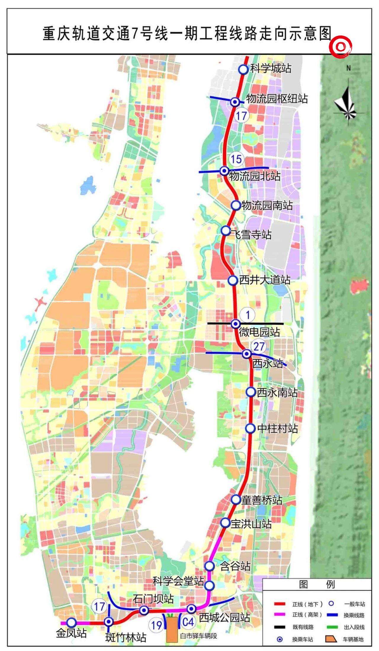 值得一提的是,7号线一期线路将采用先进的地铁As车6辆编组,设计时速高达100公里,显示出其高效、快捷的运输特性。此外,该线路还将与规划中的17号线、15号线、27号线、永川线、19号线以及既有的1号线实现换乘,进一步增强了轨道交通的互联互通性,提升了城市交通的便捷性。