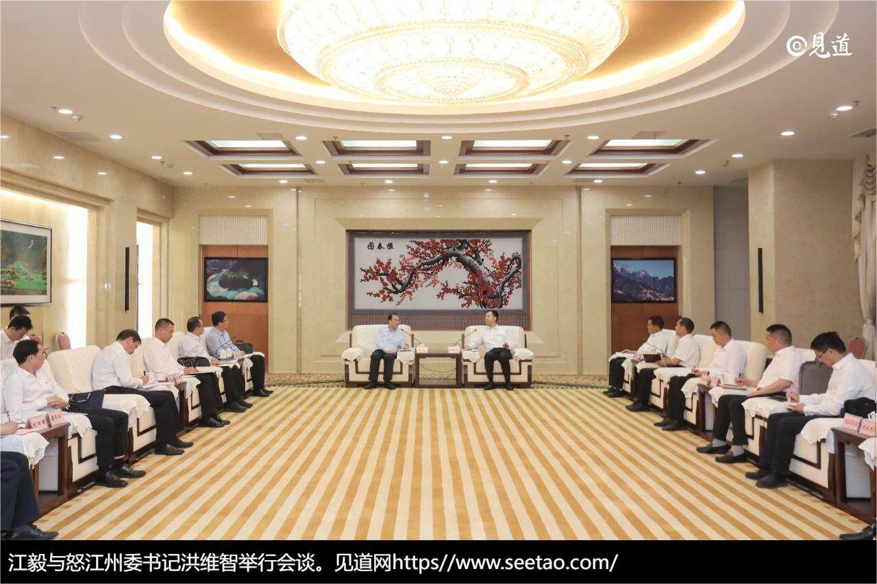 4月18日下午,中国华电党组书记、董事长江毅与怒江州委书记洪维智在怒江州府举行了会谈。双方就怒江经济社会的高质量发展及实现互利共赢展开了深入的探讨和交流。怒江州委常委、州委秘书长李义军,以及怒江州委常委、常务副州长杨永铸也一同参与了此次会谈。