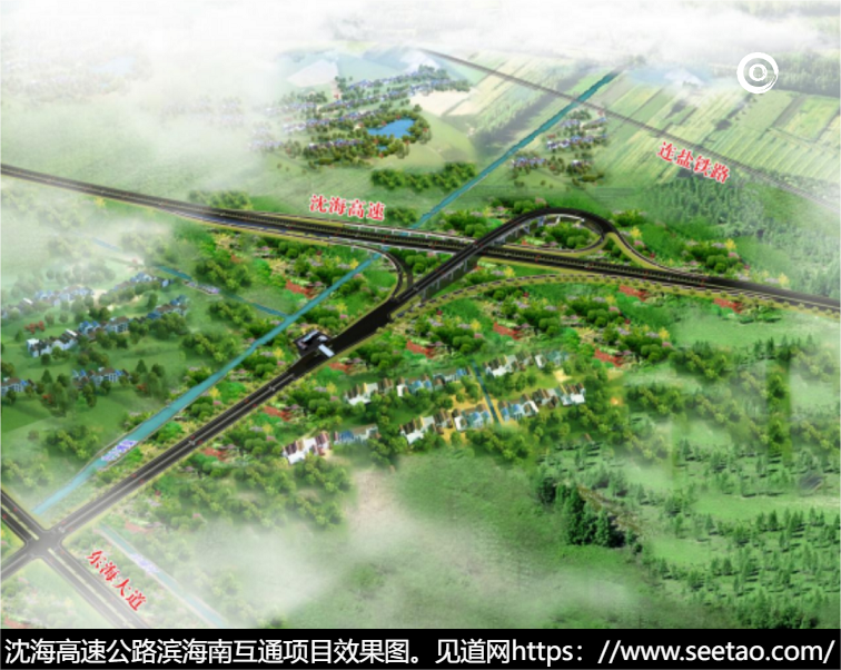 滨海南互通设置于盐城市滨海县城东侧,沈海高速公路与县道102线交叉处。项目匡算总投资约3.5亿元。