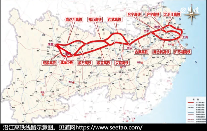 沿江高铁作为连接上海、南京、合肥、武汉、宜昌、重庆、成都等沿江重要城市的快速通道,早在2016年就被纳入国家《中长期铁路网规划》。该线路总里程约2100公里,跨越六个省及直辖市,其建设难度极大。因此,沿江高铁采用分段建设的方式,逐步推进。目前,沿江高铁已分为上海至合肥、合肥至武汉、武汉至宜昌、宜昌至涪陵、涪陵至重庆、重庆至成都六大段陆续开工建设。