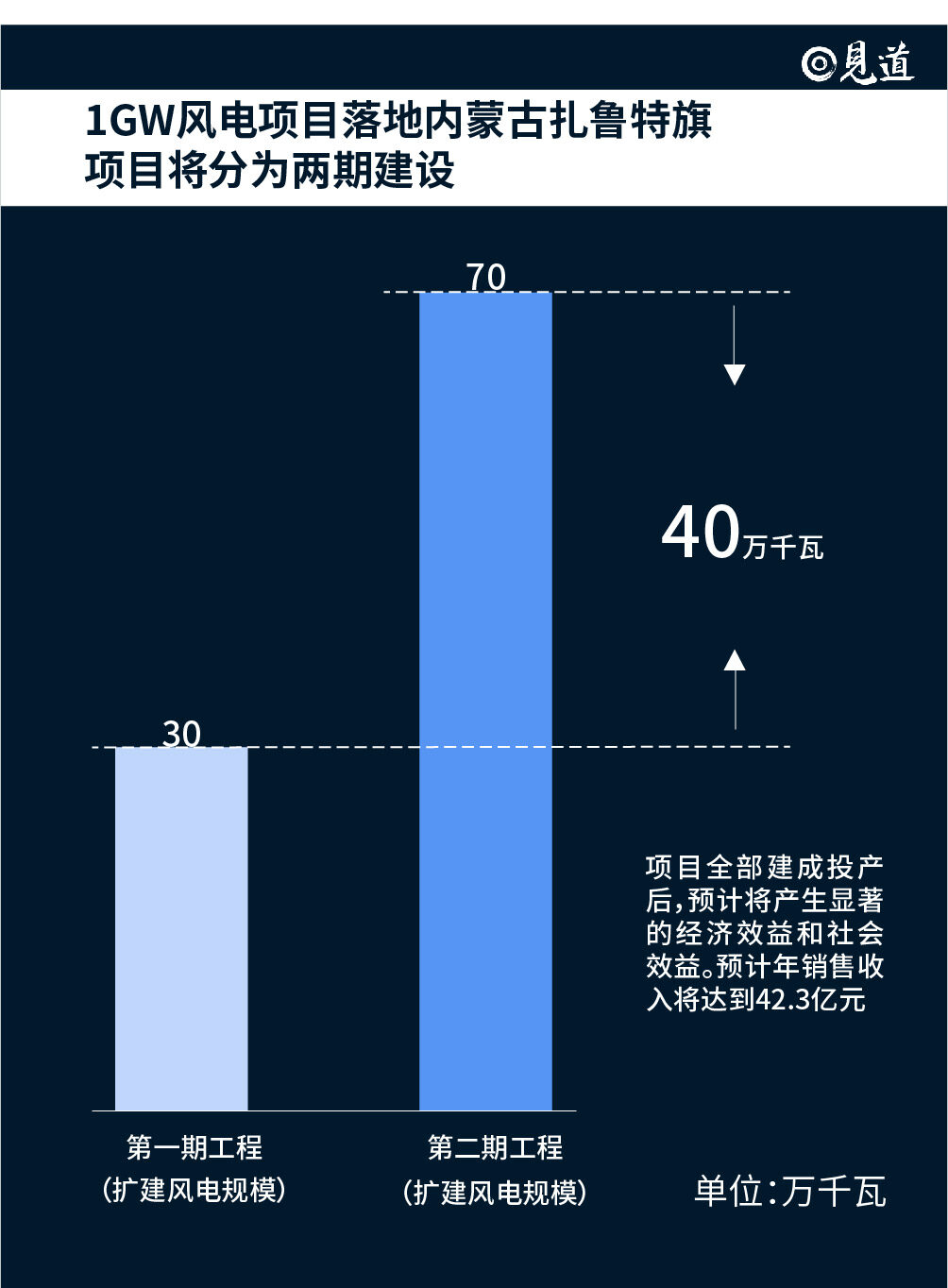 项目将分为两期建设。第一期工程将建设30万千瓦风电,同时配套建设年产10万吨绿色航空煤油生产线、氢燃料电池生产线、全钒液流储能系统、制储氢设备以及升压站系统、综合办公系统和辅助生产系统等。这一阶段的建设将为后续的发展奠定坚实基础。